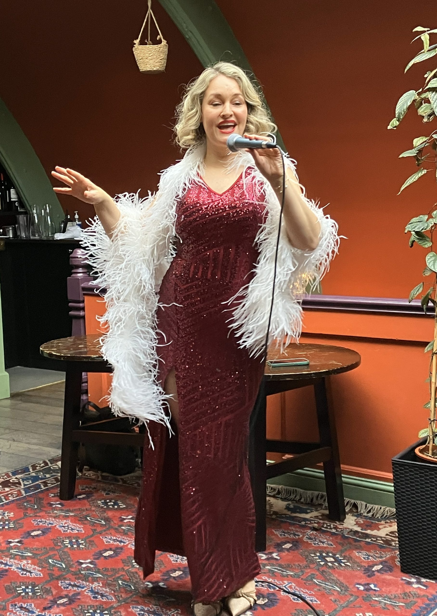 30 members of the Ango-Danish Society attended, and the festivities commenced in the Snail Bar on the second floor where we were served a glass of Crémant and entertained by the artiste Elisabeth Valentine who sang a medley of Christmas songs. This was a highly professional and rousing start to the Christmas lunch.